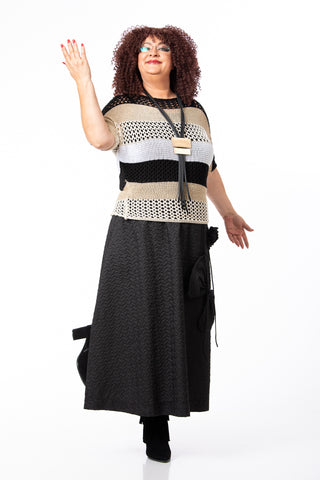 Bluza tricotată completează armonios fusta, oferind un confort sporit și versatilitate setului. Materialul este moale și plăcut, ideal pentru orice ocazie. Datorită versatilității și detaliilor sale, setul este potrivit pentru o diversitate mare de evenimente.
