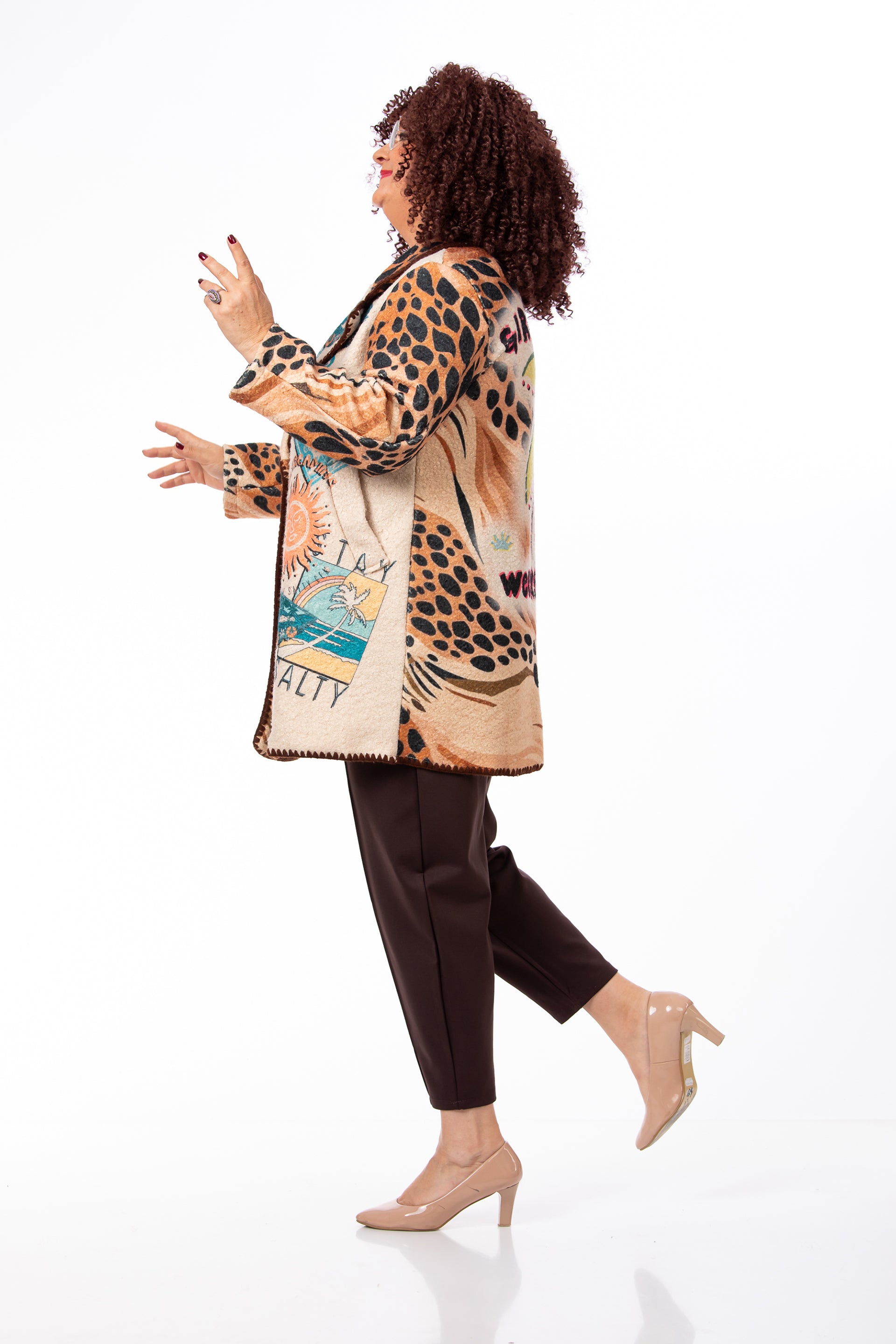 Compleu Premium 3 Piese: Haină din Stoffă, Bluză Tricotată și Pantalon din Jerseu