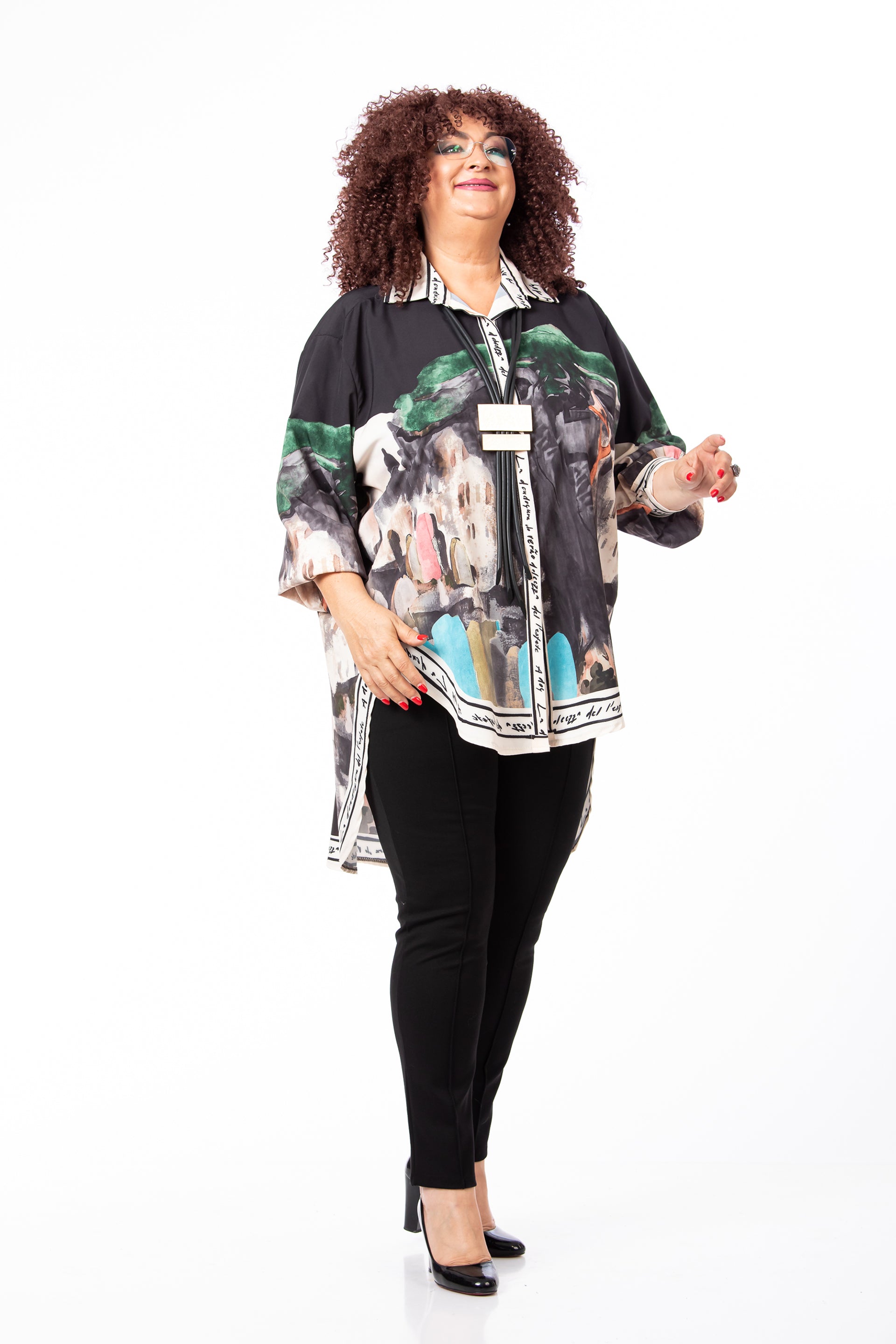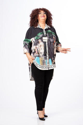 Cămașa este confecționată dintr-un amestec de vâscoză și mătase, oferind o senzație foarte plăcută la atingere, o cădere fluidă și un aspect rafinat.