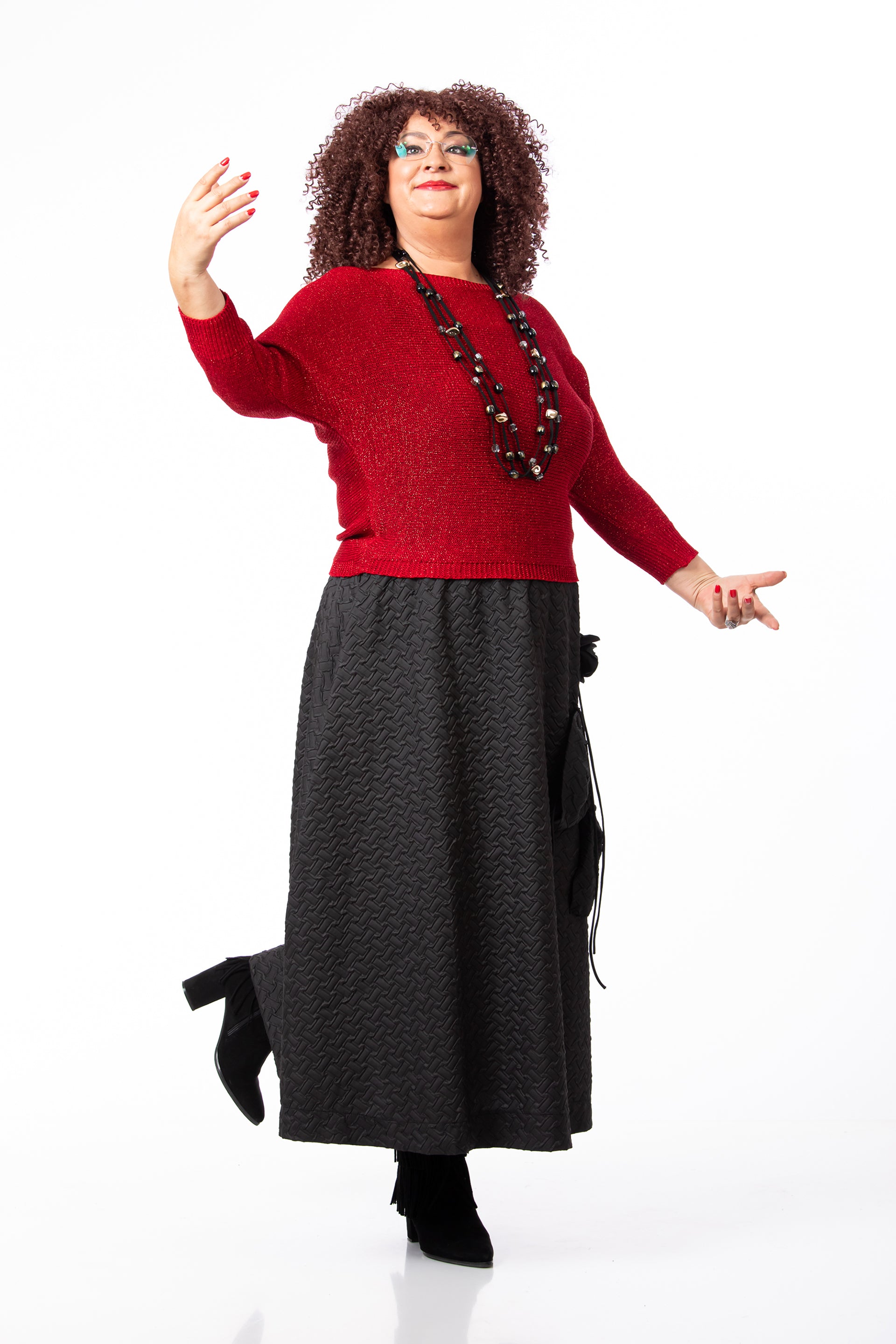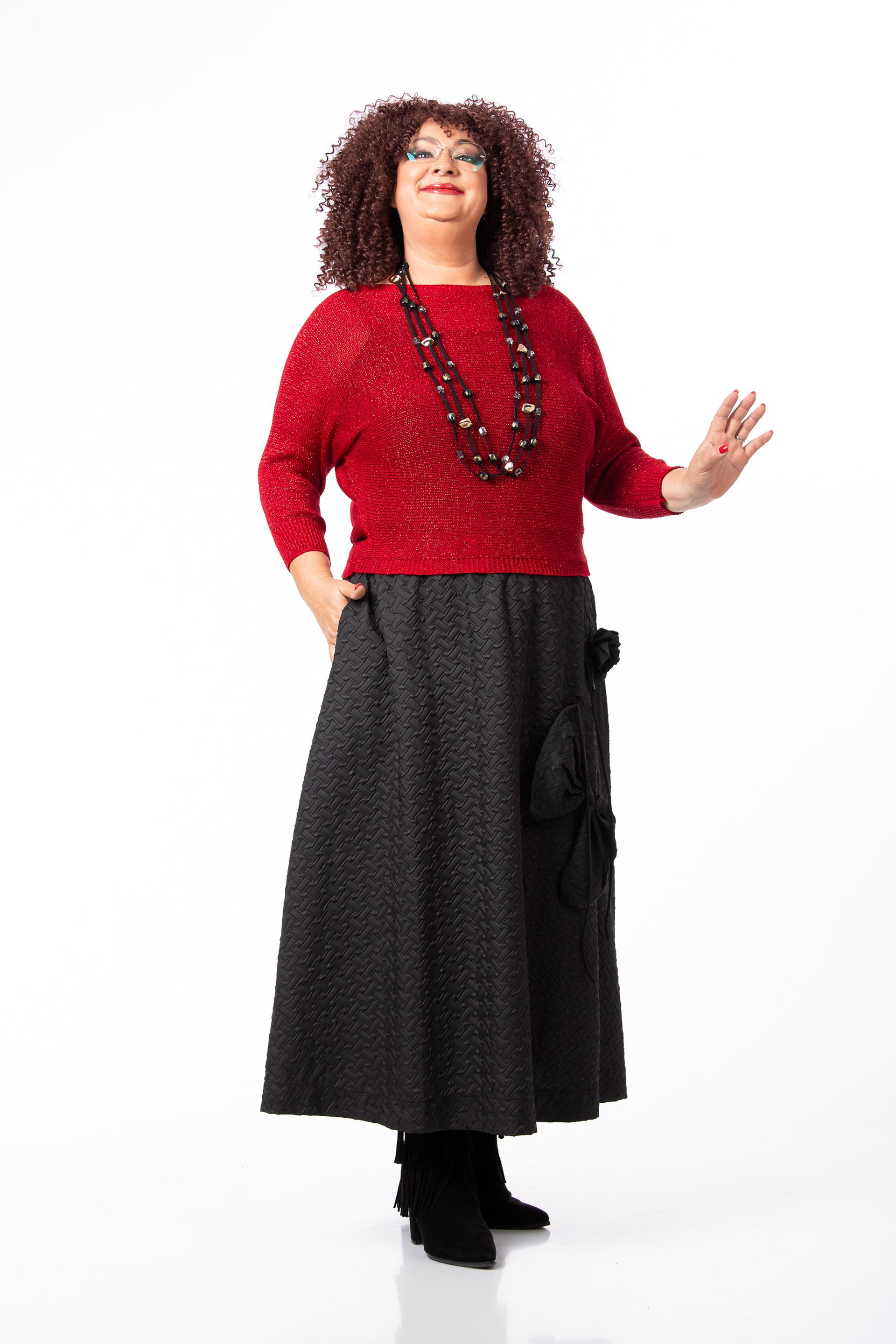 Fusta, confecționată din tricot tip Brocard ușor elastic, se simte foarte plăcut la atingere și asigură o purtare confortabilă. Designul rafinat este pus în valoare de textura tip Brocard, fiind completat de aplicații și accesorii subtile. Fusta este prevăzută cu buzunare practice și are elastic în talie, oferind o potrivire excelentă pentru o siluetă echilibrată și o ținută de înaltă clasă.