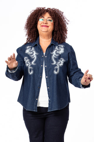 Alege această cămașă pentru a combina stilul durabil al denimului cu finețea broderiei și un confort sporit!